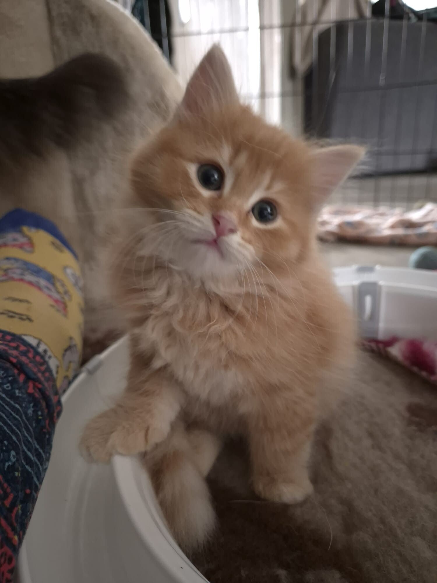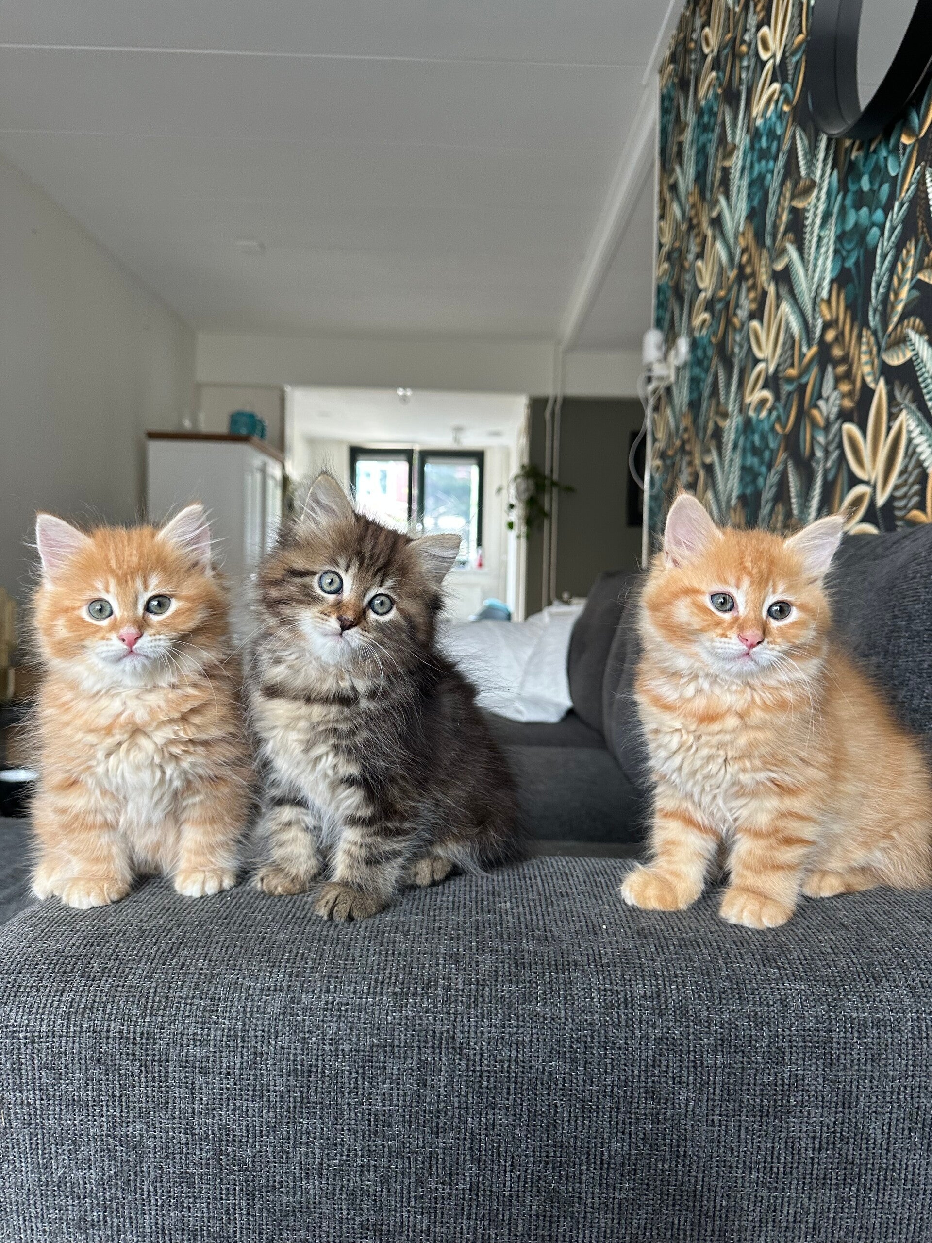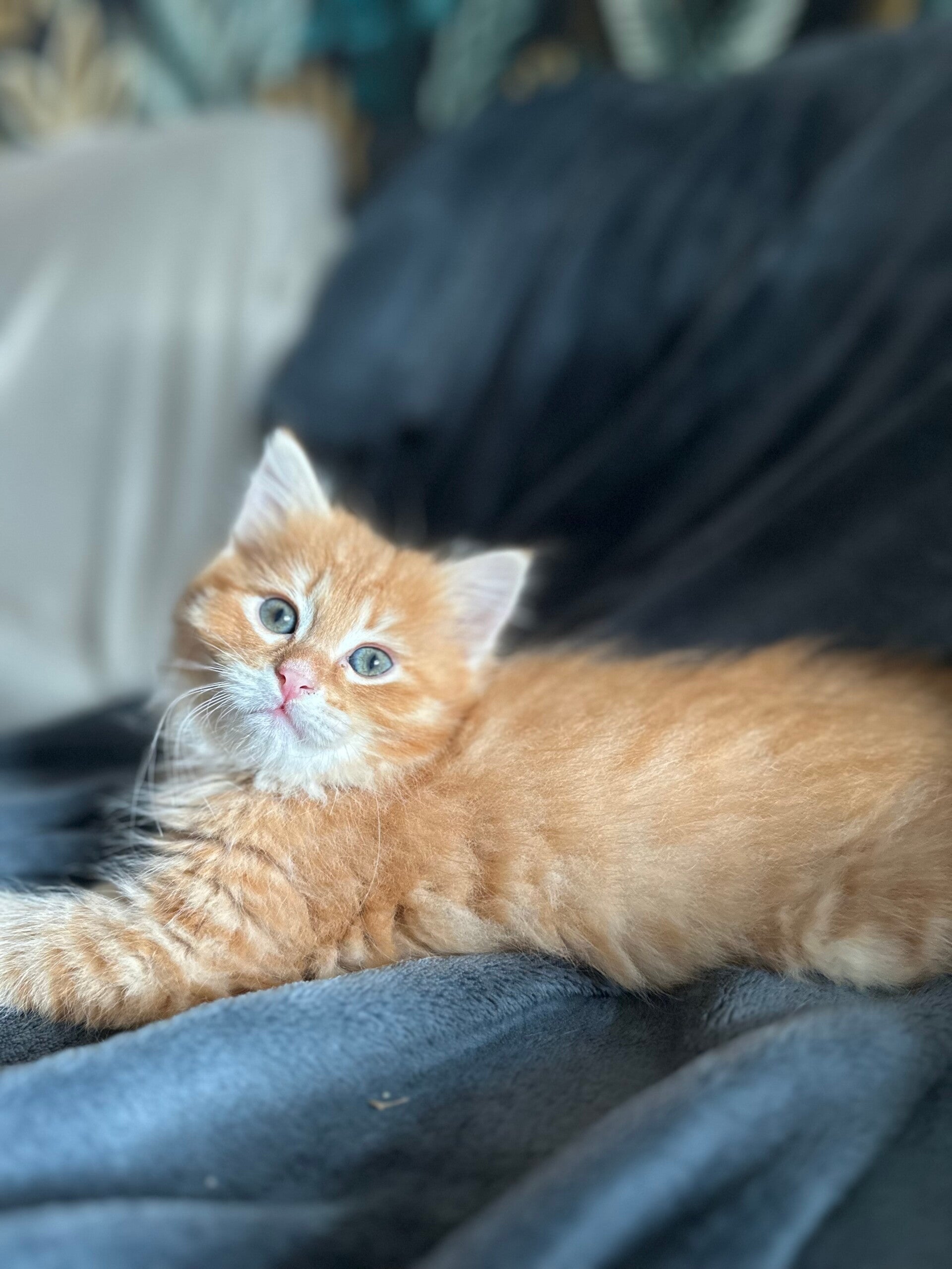 Mystical Bear Hera komt uit het H-nest. Geboren op 14-05-2025. Voor mij een extra bijzonder meisje omdat ze vanuit een eigen kater gefokt is. En dan ook nog is een rood poesje. Helemaal mijn favoriet. Ondanks ze rood is, is ze heel rustig en relaxed en ook echt een knuffelkont.